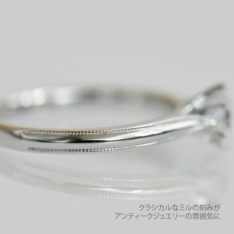 婚約指輪として定番の人気デザインである一粒ダイヤモンドのリングですが、crosss(クロスエス)ではダイヤモンドの品質を大事にし、シンプルな中にも腕部分にミルグレインを施すことによってより繊細なイメージで女性の指をエレガントに飾ってくれます。