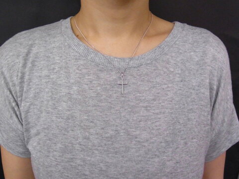 VJ 18K ホワイトゴールド ダイヤモンド クロス ペンダントチェーンセット ● ペンダントトップ ブランド VJ【ブイジェイ】 ダイヤモンド 天然ダイヤモンド0.14ctアップ 素材 18金ホワイトゴールド 天然ダイヤモンド 縦 27mm(うちバチカン6mm) 横 12mm 厚み 2.6mm その他 ・VJ/18k刻印有り ※ 画面上と実物では多少色具合が異なって見える場合もございます。